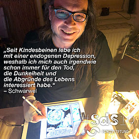 Mit unserem Studio Glücklicher Montag kann ich all die Dinge umsetzen, die mich reizen und die ich für hilfreich oder notwendig erachte, um die Welt im Rahmen meiner und unserer Möglichkeiten zu einem schöneren Ort zu machen. Konkret sind das neben Buch- und Graphic-Novel-Produktionen zu gesellschaftlichen und gesellschaftspolitischen Themen auch Animationsfilme, tagespolitische Karikaturen, Comicstrips für das Leipziger Straßenmagazin „Kippe“, Illustrationen für Schulbücher, Optiken für Mitmach-Wettbewerbe wie die „Visionale Leipzig“ oder für TV-Sendungen wie „MDR Kripo Live“, „MDR Exakt“ oder „MDR Zeitreise“ – und eben auch die Arbeiten im Rahmen der „Stadt der Sterblichen“, bei denen es mir darum geht, Tod, Trauer, Leiden und damit einhergehende Ängste, Depression und psychische Belastungen zu thematisieren und dem ganzen Themenkomplex eine breitere Aufmerksamkeit zu verschaffen.
